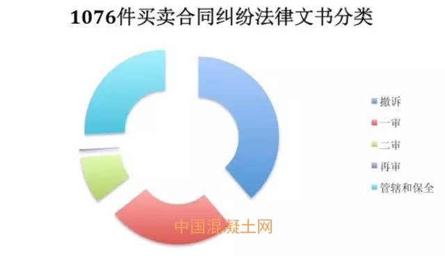 重慶地區2014年以來混凝土公司涉訴的買賣合同糾紛1076件,其中涉及管轄異議和財產保全的程序性案件有276件,經歷實體審理的794件,其他7件。