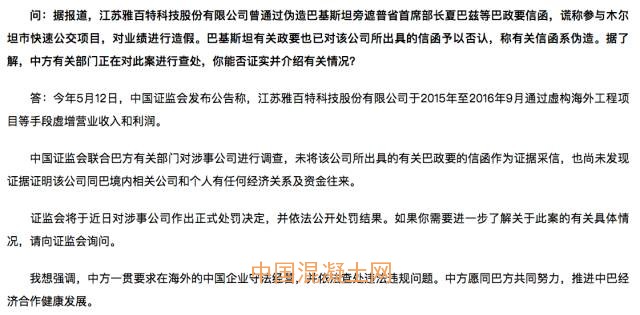 而據外交部9月4日披露,經證監會聯合巴基斯坦有關部門調查,雅百特所出具的有關巴政要的信函系偽造,也尚未發現證據證明該公司同巴境內公司和個人有任何經濟關系及資金往來。