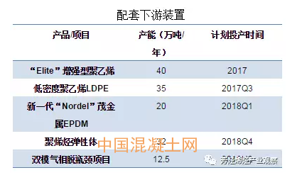 2017年9月下旬,150萬噸/年乙烯和40萬噸/年聚乙烯項目投入試運行,裝置將逐漸提升負荷,預計在四季度全面運作。配套其他下游裝置也將于2017年到2018年間逐一投產。