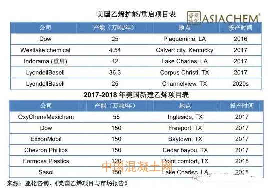 2017-2020年美國將新增乙烯產能約1200萬噸