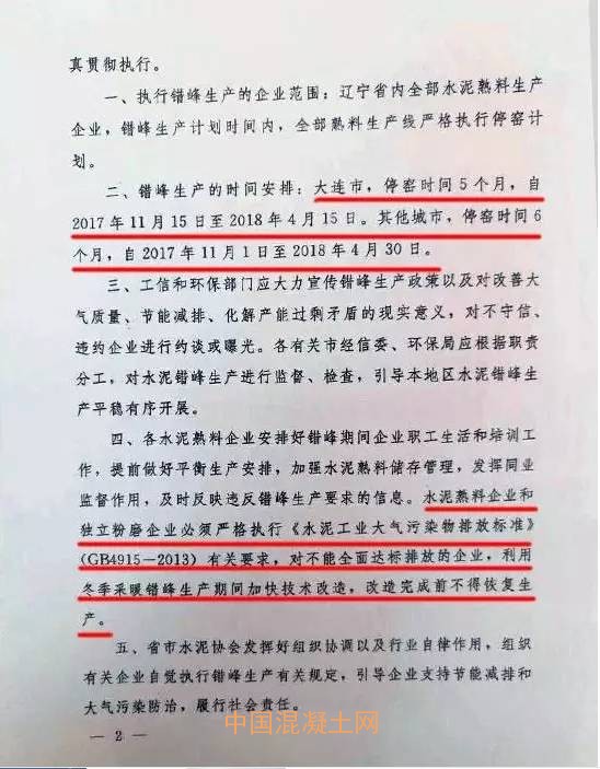 日前,遼寧省工信委和遼寧省環(huán)保廳聯(lián)合發(fā)文要求遼寧省水泥企業(yè)于今年11月開(kāi)始啟動(dòng)水泥行業(yè)采暖季錯(cuò)峰停產(chǎn)計(jì)劃,除大連市以外的其他城市的全部水泥熟料生產(chǎn)企業(yè)錯(cuò)峰停產(chǎn)6個(gè)月,錯(cuò)峰生產(chǎn)自今年11月1日起停至明年春天4月末結(jié)束。