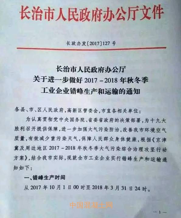 同期,山西省長(zhǎng)治市也曾發(fā)布《關(guān)于進(jìn)一步做好2017-2018秋冬季工業(yè)企業(yè)錯(cuò)峰生產(chǎn)和運(yùn)輸?shù)耐ㄖ贰R螅?strong>自2017年10月1日00時(shí)起至2018年3月31日24時(shí),水泥(含粉磨站)等建材行業(yè)企業(yè)全部停產(chǎn)。