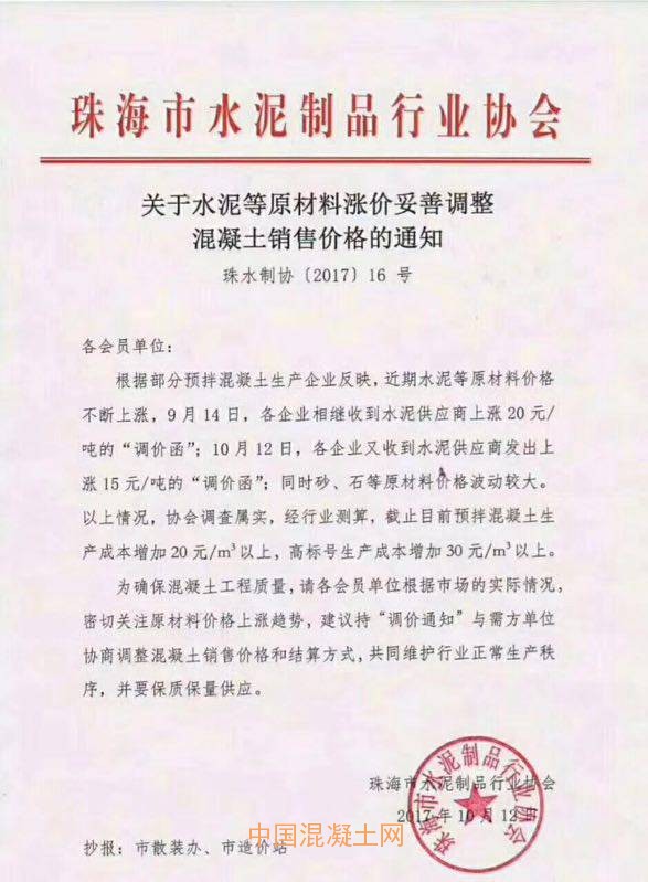 另外水泥市場價格也在9月14日上漲20元/噸后10月12日再次上漲15元/噸。原材料價格不斷上漲,直接推動混凝土生產成本上升,廣東各地混凝土市場價格近期內都有不同程度的上漲,上漲幅度為10-30元/方不等。其中廣州市混凝土價格在十一國慶后的第一周率先上漲,并且上漲幅度較大,基本都上漲了20-30元/方,其他地區也將后續慢慢跟進,但整體上漲幅度不高,基本在10-20元/方的居多,部分地區暫無調整。
