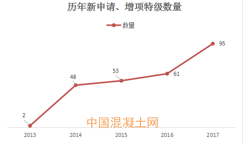 2014-2016特級資質通過數量較為穩定,2017年陡增。