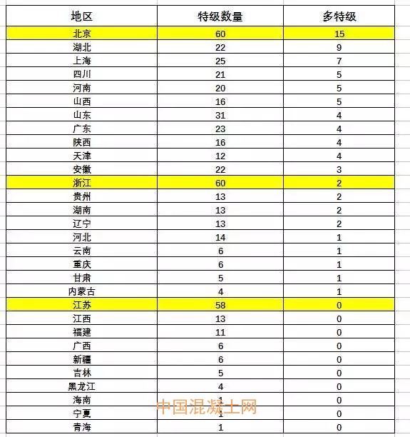 特級數量多的省份,多特級卻很少,這是因為多數的多特級企業多為央企和國企,民營企業拿到特級的雖然多,但拿到多特級的寥寥無幾,所以江蘇、浙江這種民營建筑企業為主的省份拿到多特級的自然就很少,由此可見,民營企業的全面發展還是任重道遠。