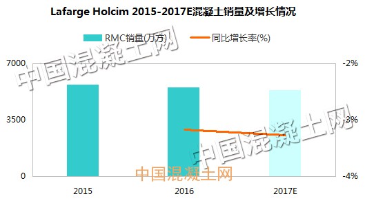 2016年對于拉法基豪瑞來說是非常具有挑戰性的一年,尤其是亞洲、歐洲及拉丁美洲等多個地區水泥、混凝土的銷量均較前一年有所下降。不過隨著拉法基和豪瑞兩家集團的合并,全球銷量最大的建筑材料公司——拉法基豪瑞的綜合實力將逐漸顯現。2016年拉法基豪瑞實現水泥銷量2.33億噸,水泥產能共計3.53億噸;骨料銷量2.83億噸,骨料廠共計648個,骨料銷售收入39.33億瑞郎(約41.05億美元);預拌混凝土銷量5500萬立方米,較前一年的5680萬立方米有所下降,混凝土銷售收入54.24億瑞郎(約56.62億美元),混凝土息稅折舊攤銷前利潤(EBITDA)9800萬瑞郎(約1.02億美元),目前集團在全球共有1410個預拌混凝土廠。