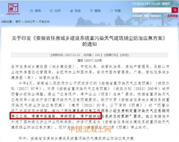 11月21日,新修訂的《安徽省住房城鄉建設系統重污染天氣建筑揚塵防治應急方案》出臺,今后單個城市空氣質量預警達到紅色級別,則啟動Ⅰ級響應措施,建筑工地停止一切作業,開啟各類噴霧降塵設備。