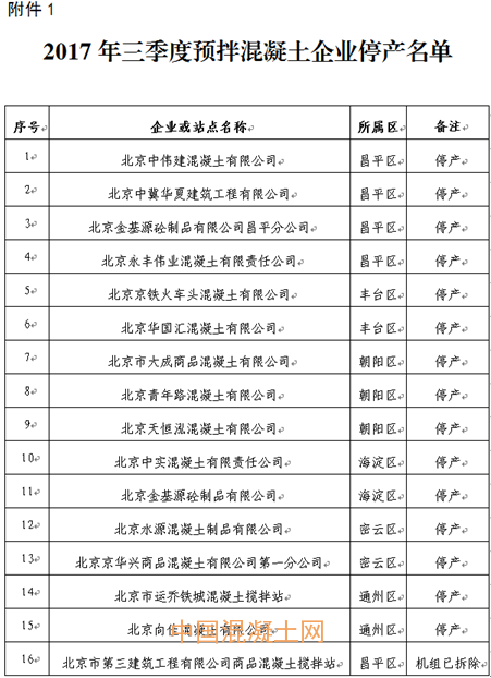 附件:1.2017年三季度預拌混凝土企業停產名單