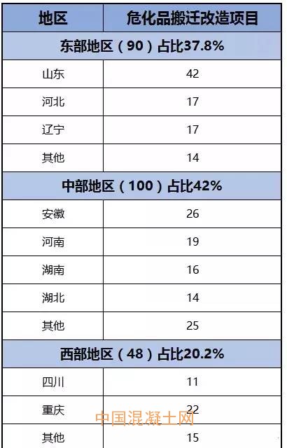 據(jù)了解,2015年,天津8·12爆炸事故發(fā)生后,工信部、國家發(fā)改委等遴選出238個危化品搬遷改造項目。按區(qū)域劃分,東部地區(qū)有90個,占項目總數(shù)的37.8%,中部地區(qū)有100個,占項目總數(shù)的42%;西部地區(qū)有48個,占項目總數(shù)的20.2%。