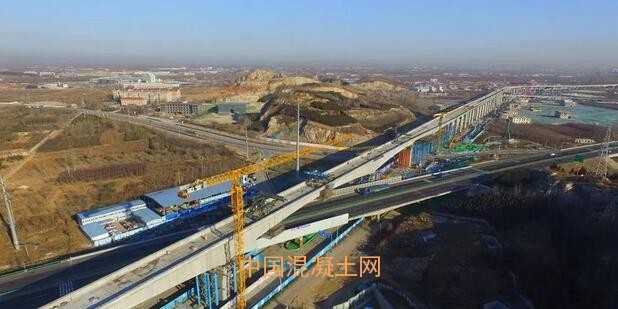 19日上午,濟廣高速上方距地面25米處,混凝土緩緩落下,跨高速橋合龍,軌道交通R1線高架段全線正式貫通。