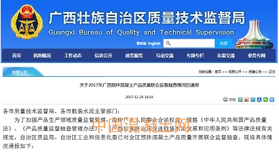據廣西壯族自治區質量技術監督局官網12月26日發布的通報,廣西自治區質監局、自治區工業和信息化委對全區預拌混凝土產品質量開展聯合監督抽查,2017年共抽取全區87家預拌混凝土企業生產的87批次產品。經檢驗,合格產品79批次,不合格產品8批次,不合格產品檢出率為9.2%。