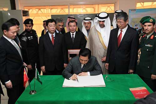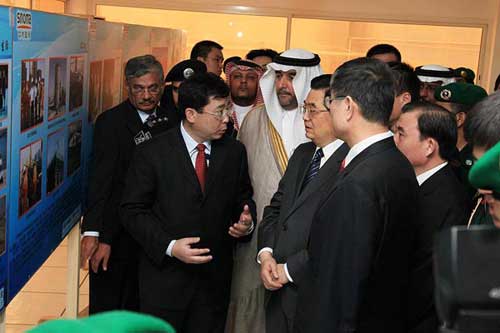 中材集團總經理譚仲明、中材國際董事長劉志江、總裁王偉及沙方高管人員陪同胡主席考察,中沙兩國員工在現場熱烈歡迎胡錦濤主席。
