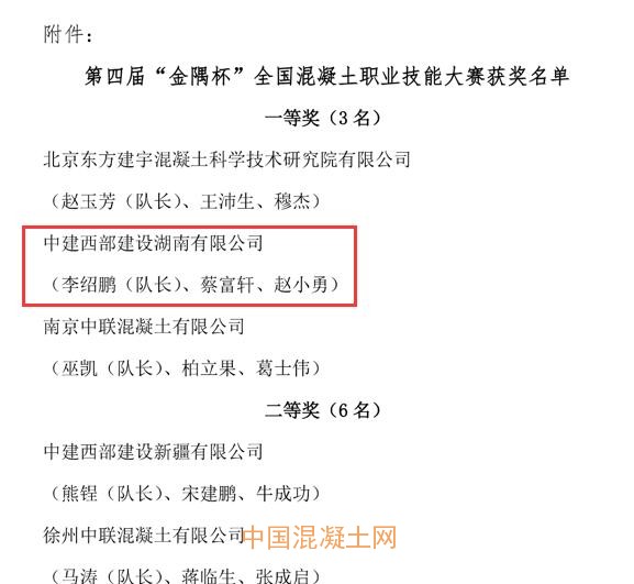 比賽流程分為理論知識(shí)筆試和指定條件下的現(xiàn)場(chǎng)競(jìng)技兩大版塊,比賽日程安排緊湊,內(nèi)容形式豐富,對(duì)參賽選手的專業(yè)知識(shí)、實(shí)踐操作、臨場(chǎng)應(yīng)變和綜合素質(zhì)都有著全面考察。隨著賽事最終力學(xué)性能結(jié)果的公布,繼去年獲得全國(guó)混凝土職業(yè)技能比賽一等獎(jiǎng)的優(yōu)異成績(jī)之后,今年中建西部建設(shè)湖南有限公司代表隊(duì)再次憑借扎實(shí)的技能功底和出色的比賽發(fā)揮,一舉包攬大賽一等獎(jiǎng)和理論知識(shí)第一名的好成績(jī)。