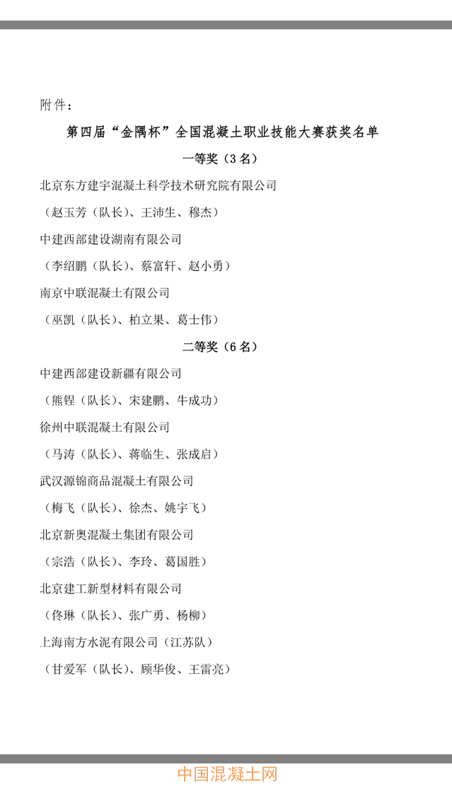 為持續(xù)推進(jìn)我國(guó)混凝土行業(yè)高技能人才隊(duì)伍建設(shè)工作,加快提升混凝土行業(yè)從業(yè)人員的專業(yè)知識(shí)水平和實(shí)操技能,2017年11月24-25日,由中國(guó)機(jī)械冶金建材工會(huì)全國(guó)委員會(huì)和中國(guó)混凝土與水泥制品協(xié)會(huì)主辦,北京建材研究總院有限公司承辦了第四屆“金隅杯”全國(guó)混凝土職業(yè)技能大賽,來(lái)自全國(guó)18個(gè)省、自治區(qū)和直轄市的30個(gè)混凝土企業(yè)隊(duì)伍參加了本次大賽。
