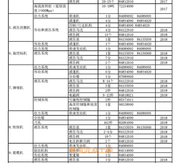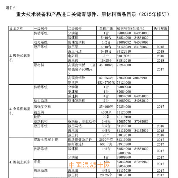 《重大技術(shù)裝備和產(chǎn)品進口關(guān)鍵零部件、原材料商品目錄(2015年修訂)》文件顯示,其中涉及到工程機械產(chǎn)品的進口關(guān)鍵零部件免稅執(zhí)行年限大多截至到今明兩年(2017-2018年),這些進口產(chǎn)品的普通稅率大都在30%~40%范圍內(nèi)。