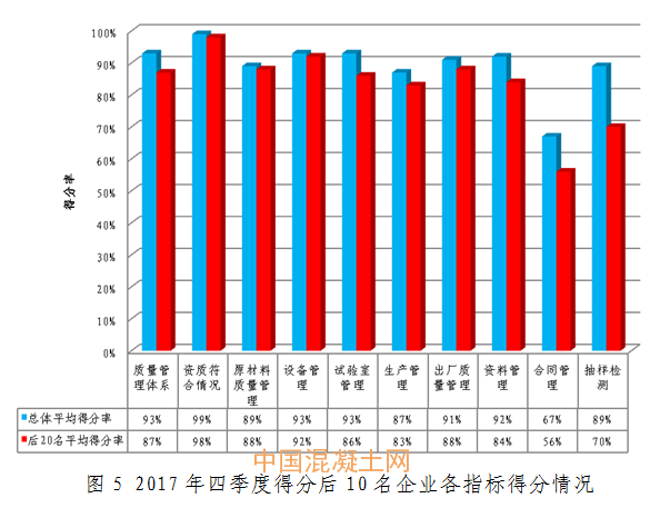 一是四季度北京市正常生產(chǎn)的預(yù)拌混凝土企業(yè)126家,全市企業(yè)平均分90.68,整體檢查情況良好,混凝土試塊(拌合物)抽檢得分率達(dá)到98.7%,全市預(yù)拌混凝土質(zhì)量總體受控;二是原材料抽檢得分率較上季度有小幅下降,需進(jìn)一步加強(qiáng)監(jiān)管;三是企業(yè)之間得分差距進(jìn)一步縮小,全市預(yù)拌混凝土企業(yè)質(zhì)量管理水平整體呈上升趨勢(shì)。