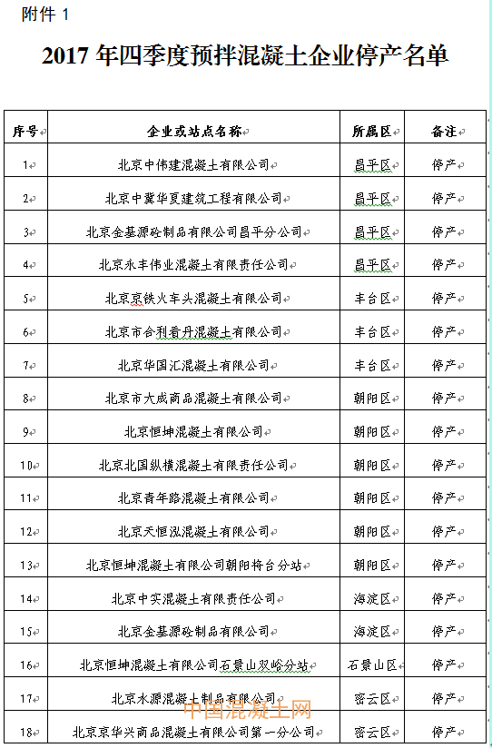 附件:1.2017年四季度預(yù)拌混凝土企業(yè)停產(chǎn)名單