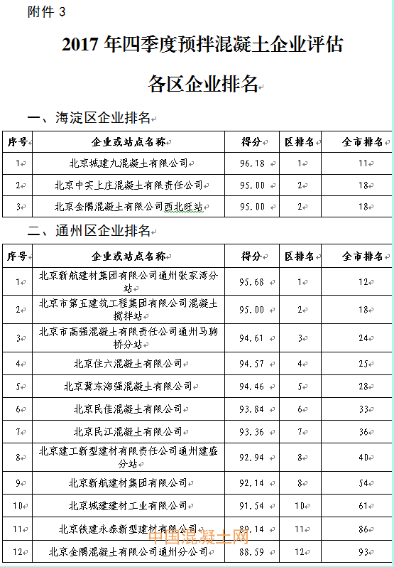 3.2017年四季度預(yù)拌混凝土企業(yè)評(píng)估各區(qū)企業(yè)排名