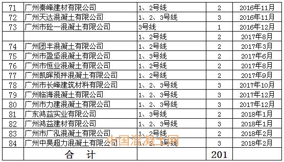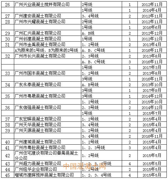 2018年2月2日,廣州市混凝土行業協會公布廣州市預拌混凝土行業已安裝“混凝土生產信息自動采集系統”的企業和生產線名單,具體名單如下: