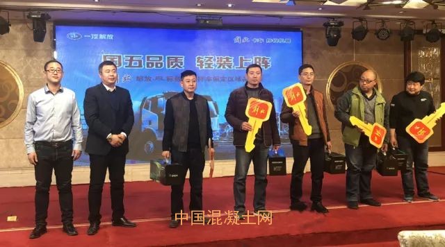 上午11點,活動正式開始,首先由中集凌宇和一汽解放的代理商——中冀汽車貿易集團營銷總監布廣民上臺致辭,對前來參加的用戶表示歡迎和感謝,并承諾中冀售出的攪拌車全部享受整車一體化服務,有“迅雷”服務小組兩小時內上門。