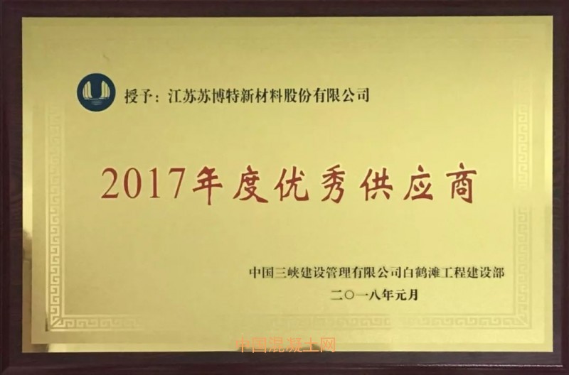 中國三峽建設管理有限公司白鶴灘工程建設部、中交一公局橋隧工程有限公司先后授予我司“2017年度優秀供應商”榮譽稱號!