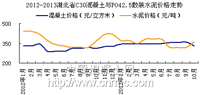 今年前三季,湖北混凝土市場價格走勢較為平穩,根據中國混凝土網統計的數據顯示,截止10月31日,武漢地區混凝土市場實際報價330元/方,黃石地區混凝土市場指導價345元/方,實際成交價315元/方,較上月略有下調。另據中國混凝土網調查了解,11月湖北混凝土市場價格將有所上調,隨著下半年建設速度加快,新開工項目的不斷推進,以及鐵路追加固定資產投資和房地產融資放松,都將改善湖北混凝土市場需求。