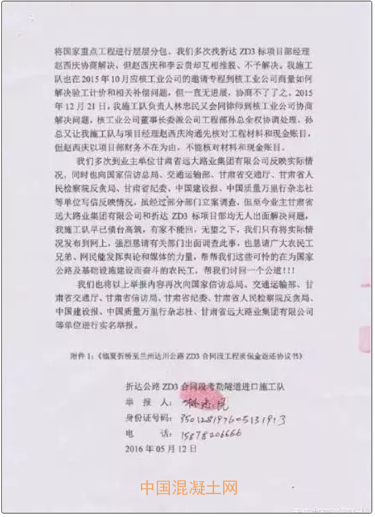 后面的事情大家也都知道了,林忠民于是走上了瘋狂的舉報之路,先后向甘肅省紀委、國家信訪總局等部門舉報折達公路項目存在轉分包、偷工減料、拖欠農民工工資等問題,引發媒體關注。(前一腳還稱兄道弟免簽協議,后一腳就舉報上訪我要你亡等丑態百出)