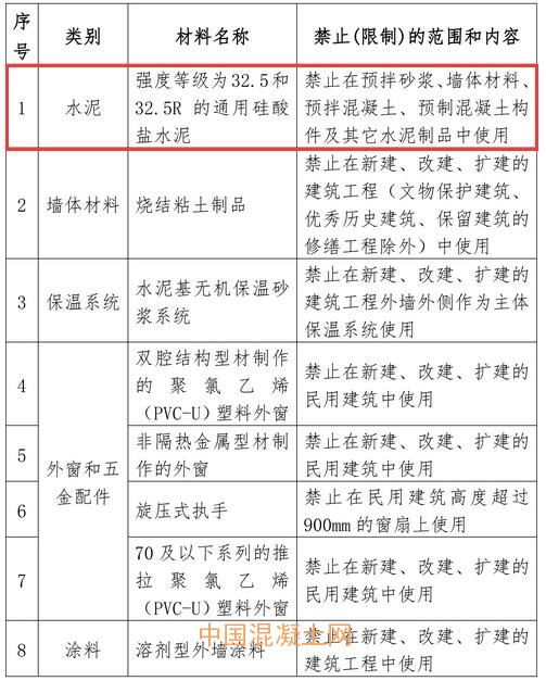 近日,上海市住建委公布了第四批禁止或者限制生產和使用的于建設工程材料目錄,其中包括強度等級為32.5和32.5R的通用硅酸鹽水泥。文件原文如下: