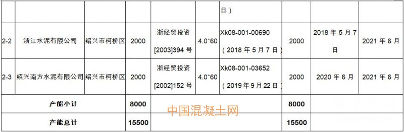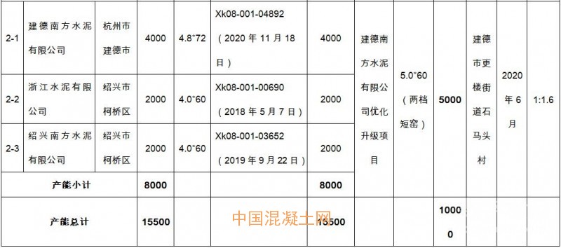 浙江南方水泥有限公司擬建水泥熟料項(xiàng)目產(chǎn)能置換方案表