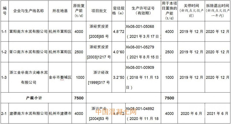 浙江南方水泥有限公司擬用于建設(shè)項(xiàng)目置換產(chǎn)能關(guān)停和拆除退出時(shí)間表