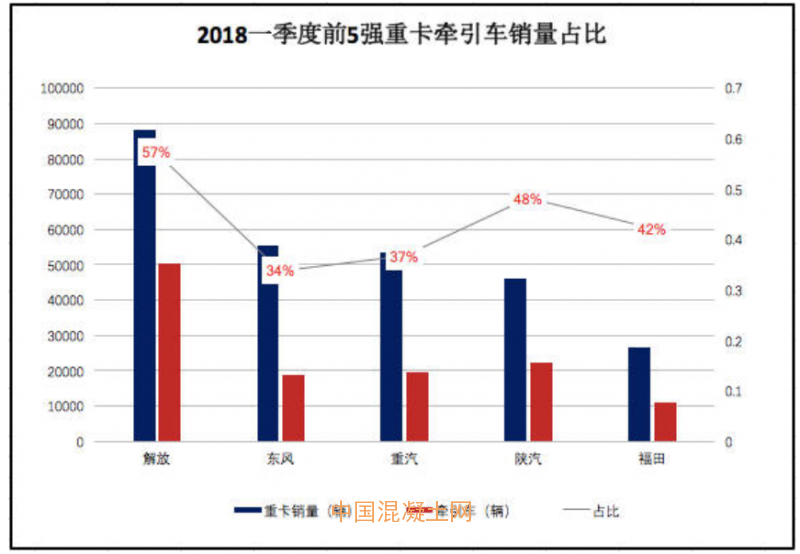另外,前5強(qiáng)重卡企業(yè)的牽引車占比依然很高,牽引車仍是其總銷量的主要貢獻(xiàn)力量。中汽協(xié)數(shù)據(jù)顯示,1-3月,解放牽引車銷量5萬輛,在其重卡銷量中占比57%;東風(fēng)牽引車銷量1.9萬輛,占比34%;重汽牽引車銷量2萬輛,占比37%;陜汽牽引車銷量2.2萬輛,占比48%;福田牽引車1.1萬輛,占比42%。