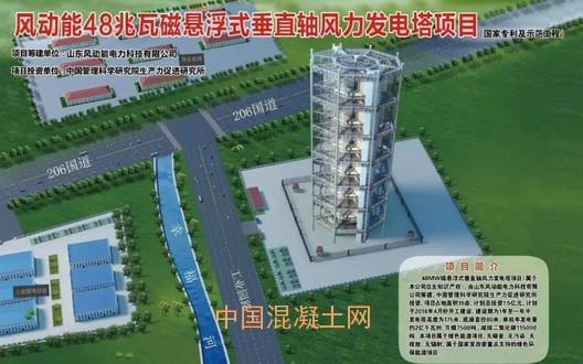 項目概況:項目主體高度196米,采用巨型鋼桁架結構,單塔年發電量約為2.2億千瓦時,用鋼量約1萬噸。共設置六層磁懸浮式水平葉片,每層葉片依靠磁懸浮與風共同作用進行旋轉,獨立發電且互不影響,便于安裝與維護,具有無噪音、無污染、無排放、無輻射等優點。該項目是國家發改委、國家能源局、山東省發改委立項核準的重大能源建設項目,是目前全球單體最高、發電量最大的風力發電塔項目。