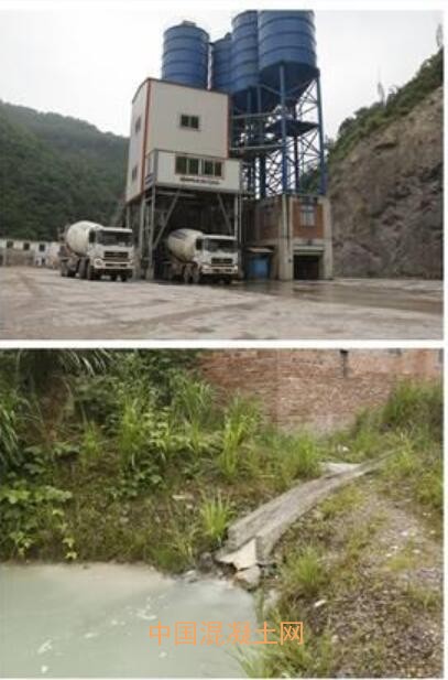 圖為:S218省道東陽雙城化工附近中天項目部的混凝土攪拌站污水直排