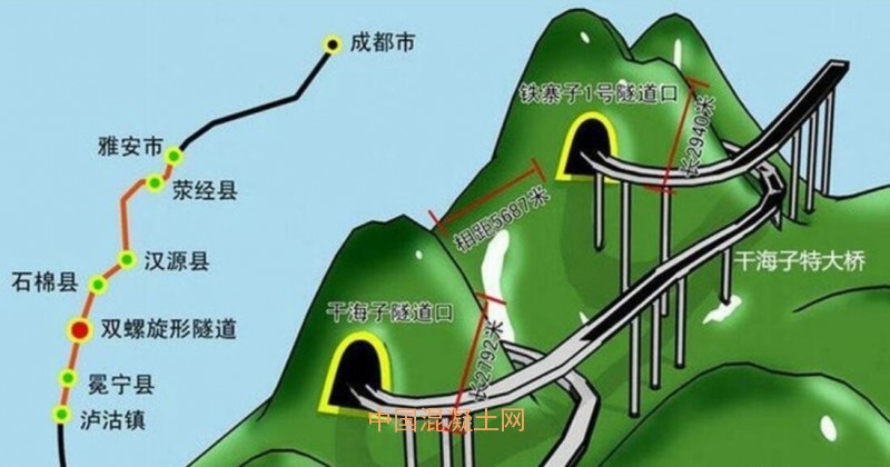 干海子特大橋是山區橋梁建設的一個成功案例,為了實現近距離抬升海拔并連接隧道,進出洞由大橋來連接,隧道里進行螺旋抬升,進洞到出洞的海拔高差達700多米。建設這座大橋的施工環境苛刻艱險,許多解決方案都屬世界首創,為世界山區高速公路設計建設提供了一個成功的范本。