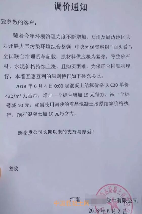 砂石材料價格大幅上漲且采購困難,目前部分攪拌站已無砂石可用,鄭州地區混凝土出現大幅上漲,幅度為30-50元/方。由于河砂連續2月價格居高不下,一攪拌站河砂混凝土每方加價40元,目前市場混凝土C30非泵送報價430-450元/方。