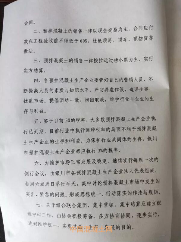 八、全體預拌混凝土生產企業要開展強有力的自律工作,加強監督。實行合作、包容、互諒互解、共贏共存的生存局面。