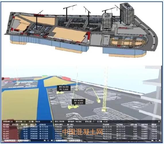 上海建工智能物料管控系統(tǒng)打通了混凝土生產(chǎn)數(shù)據(jù)庫與收料系統(tǒng)數(shù)據(jù)庫,通過與BIM系統(tǒng)的數(shù)據(jù)協(xié)同,在BIM模型上直觀展示混凝土澆筑點和各澆筑點實時澆筑量。這也是建工集團內(nèi)部第一次實現(xiàn)混凝土物流的全過程管控。