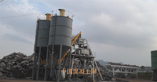 隨后,記者又趕往李宅鎮登干村附近的一個攪拌站,樹叢中豎立著兩個水泥罐子,一座簡單的攪拌樓,沒有任何的環保設施,也正熱火朝天地生產著。