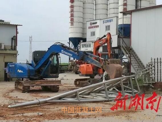 7月5日8時30分,湘陰縣城管局派出綜合執法人員200多人、2臺挖機、 5 臺吊車、1臺鏟車及20余臺運輸車輛的執法隊,來到湘陰縣靜河鄉青湖村附山垸,對湖南湘天混凝土有限公司廠房及辦公用房進行強制拆除。