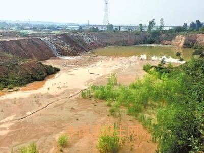 在這個(gè)占地約有數(shù)十畝、深約十幾米的大坑?xùn)|北面,因這家企業(yè)大肆采砂導(dǎo)致耕地出現(xiàn)大面積塌方,耕地上的蘋果樹、核桃樹等樹根裸露。這家企業(yè)還將廢渣、污水排入坑內(nèi),也有人將建筑垃圾往里面傾倒,不僅使耕地資源遭到破壞,給附近群眾帶來安全隱患,而且還污染了當(dāng)?shù)氐淖匀簧鷳B(tài)環(huán)境。