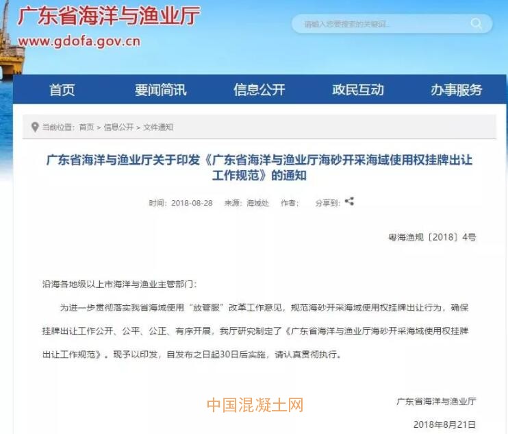 廣東省海洋與漁業(yè)廳海砂開采海域