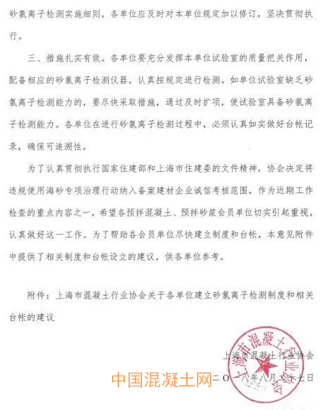 日前,上海混凝土行業協會發布《關于進一步規范預拌混凝土和預拌砂漿生產用砂、切實加強質量管控的意見》。