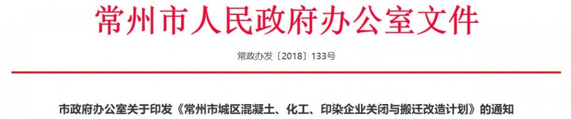 8月29日,常州市政府辦公室關(guān)于印發(fā)《常州市城區(qū)混凝土、化工、印染企業(yè)關(guān)閉與搬遷改造計(jì)劃》的通知,為認(rèn)真貫徹落實(shí)《中共常州市委 常州市人民政府關(guān)于印發(fā)常州市2018年大氣污染防治攻堅(jiān)行動(dòng)方案的通知》(常發(fā)〔2018〕16號(hào))要求,切實(shí)提高常州市空氣質(zhì)量,將加快推進(jìn)城區(qū)混凝土、化工、印染企業(yè)關(guān)閉與搬遷改造工作。