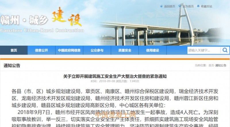 與此同時,贛州市安委會建筑施工安全專業(yè)委員會發(fā)布緊急通知,自通知下發(fā)之日起至9月14日,在全市范圍內(nèi)立即開展建筑施工安全生產(chǎn)大整治大督查。