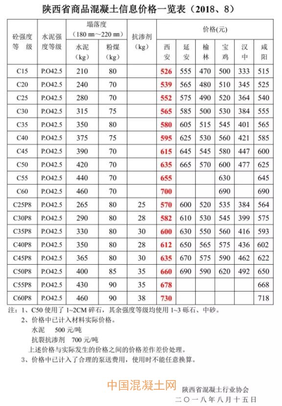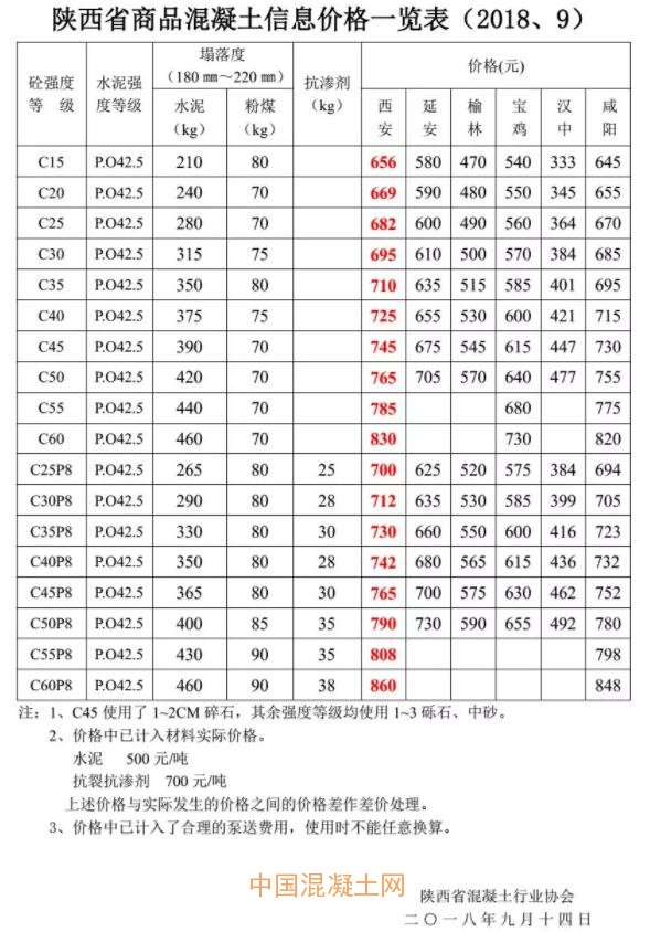 西安市混凝土9月信息價發布,較8月份上漲130元/方。