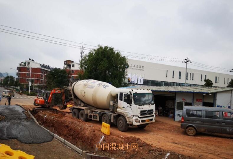 隨后,記者又趕往了東陽市。在東陽市黃山尖攪拌場,攪拌站機器轟鳴,數輛攪拌車停在攪拌樓前等待裝車。一輛剛裝好混凝土的攪拌車正駛離攪拌場,記者一路跟隨,在經過近一個小時的運輸后,攪拌車將混凝土卸在了義烏市上河村的舊村改造工地。