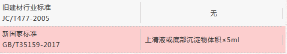 在速凝劑穩定性上,新國標規定了具體的穩定性狀態,上清液或底部沉淀物體積≤5ml才是穩定性好的速凝劑。