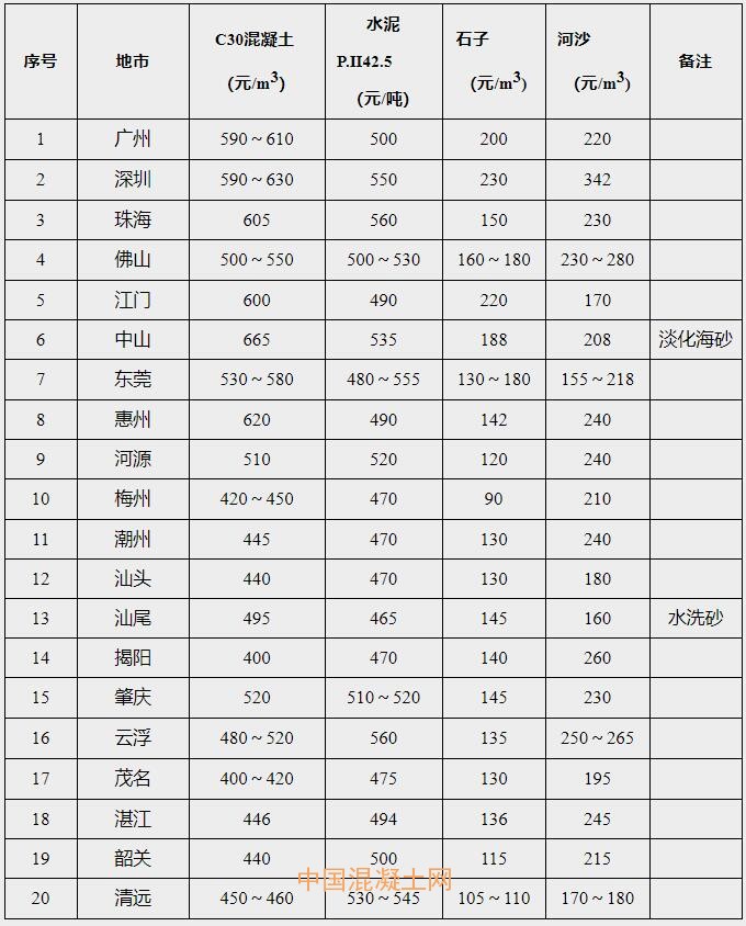 近期,廣東省價格監測中心組織部分市價格監測機構對砂石、水泥、混凝土價格運行情況進行跟蹤調查,結果顯示:經過今年三季度價格快速上漲后,目前全省砂石、水泥、混凝土價格仍在高位運行。