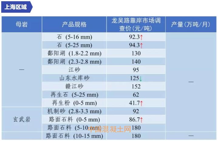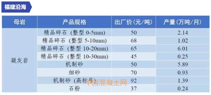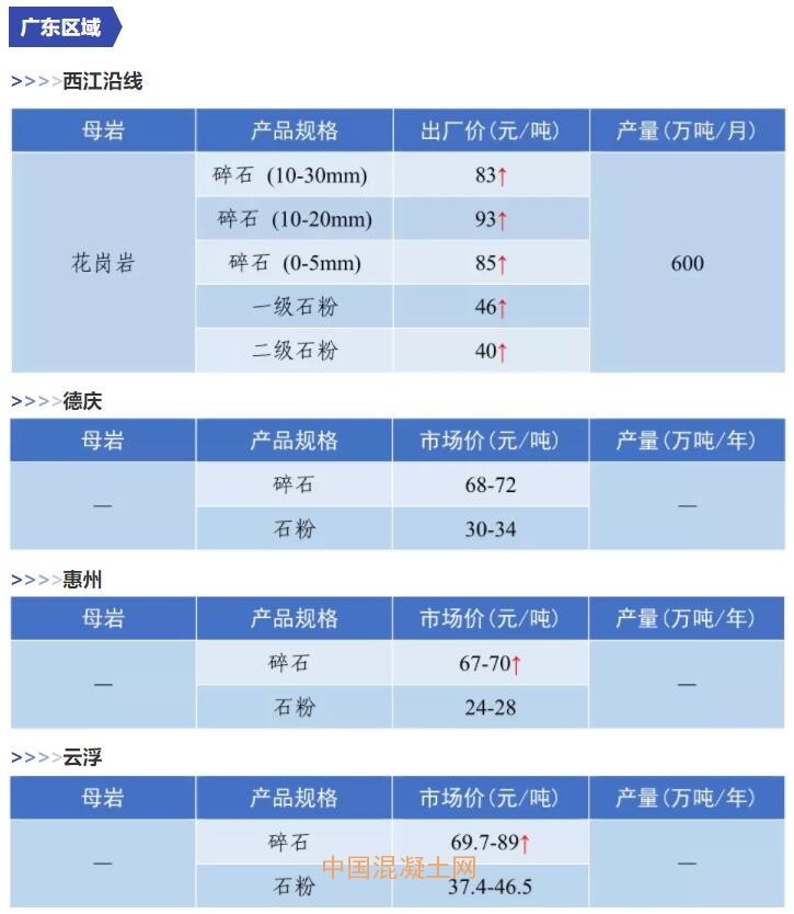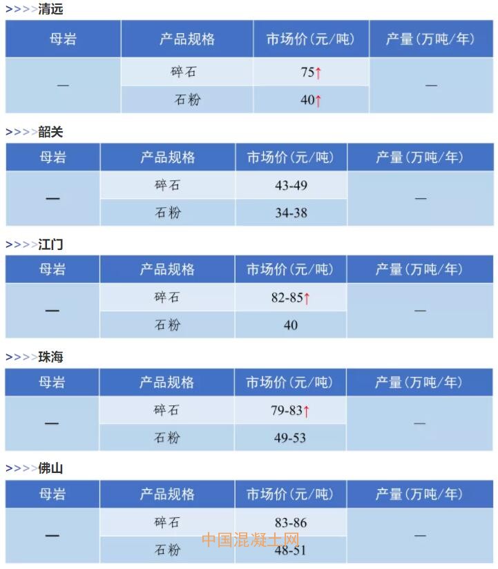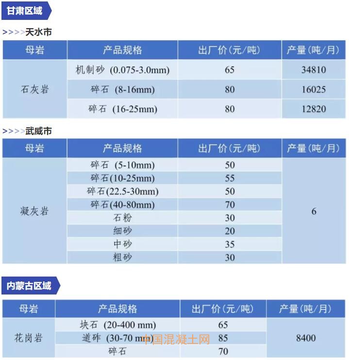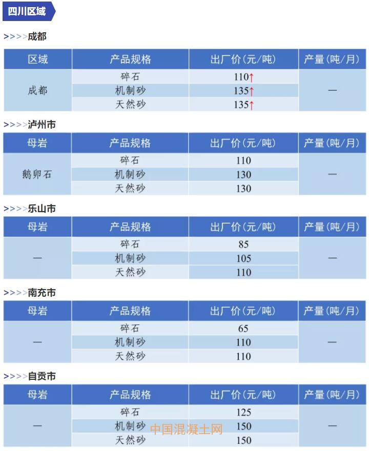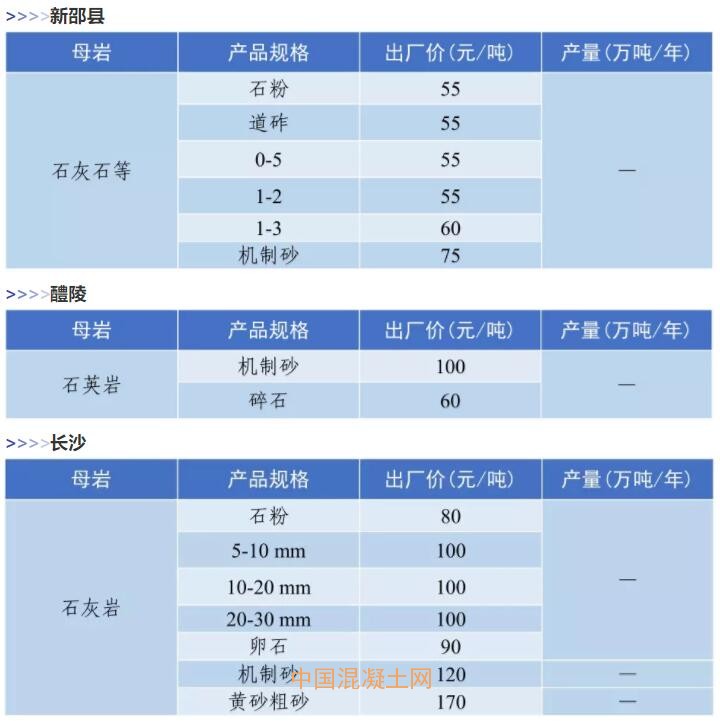 11月全國砂石價格和產量匯總