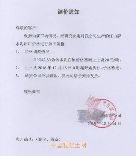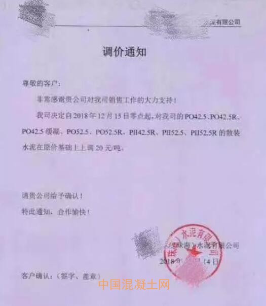 以下為部分地區(qū)水泥企業(yè)調(diào)價(jià)函: